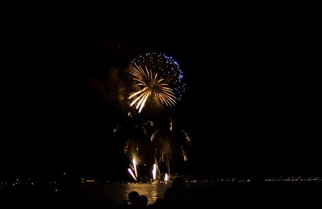 Such a fabulous show Tahoe offers though. Its got the small town feel, everyone seems all cozied up on the beach, the fireworks go one or two at time so you get to enjoy each one, the fireworks glisten on the lake, and they throw several shaped ones in there.